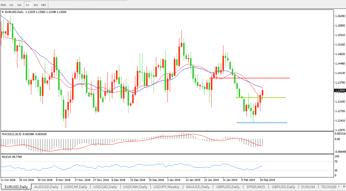 交易策略:在1.1315之上,看涨,目标价位为 1.1365 ,然后为1 .1405。