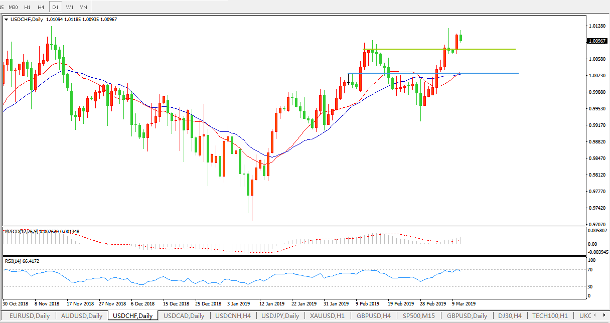 基本面分析:美国1月零售意外上升,但难改变对一季度经济活动明显放缓的预期;① 美国1月份零售额出人意料地上升,主要是由于建筑材料和可自由支配开支的购买增加,但12月份的收入比最初预计的要弱得多;② 12月的数据被修正为下降1.6%,而不是之前报告的下降1.2%。去年12月是自2009年9月以来的最大跌幅,当时美国经济正在摆脱衰退;③ 向下修正12月份的核心零售额,可能会影响政府对第四季度GDP的估计。政府上个月公布的数据显示,2018年最后三个月的经济年增长率为2.6%;④ 经济学家们相信,在政府本月晚些时候发布修正后,第四季度GDP增长预期将被下调;1月份核心零售销售的反弹,可能不会改变人们对一季度经济活动明显放缓的预期。美元指数小幅度下行,美瑞受英国脱欧时间的不确定性影响,一度上破1.0100,整体维持上攻态势。