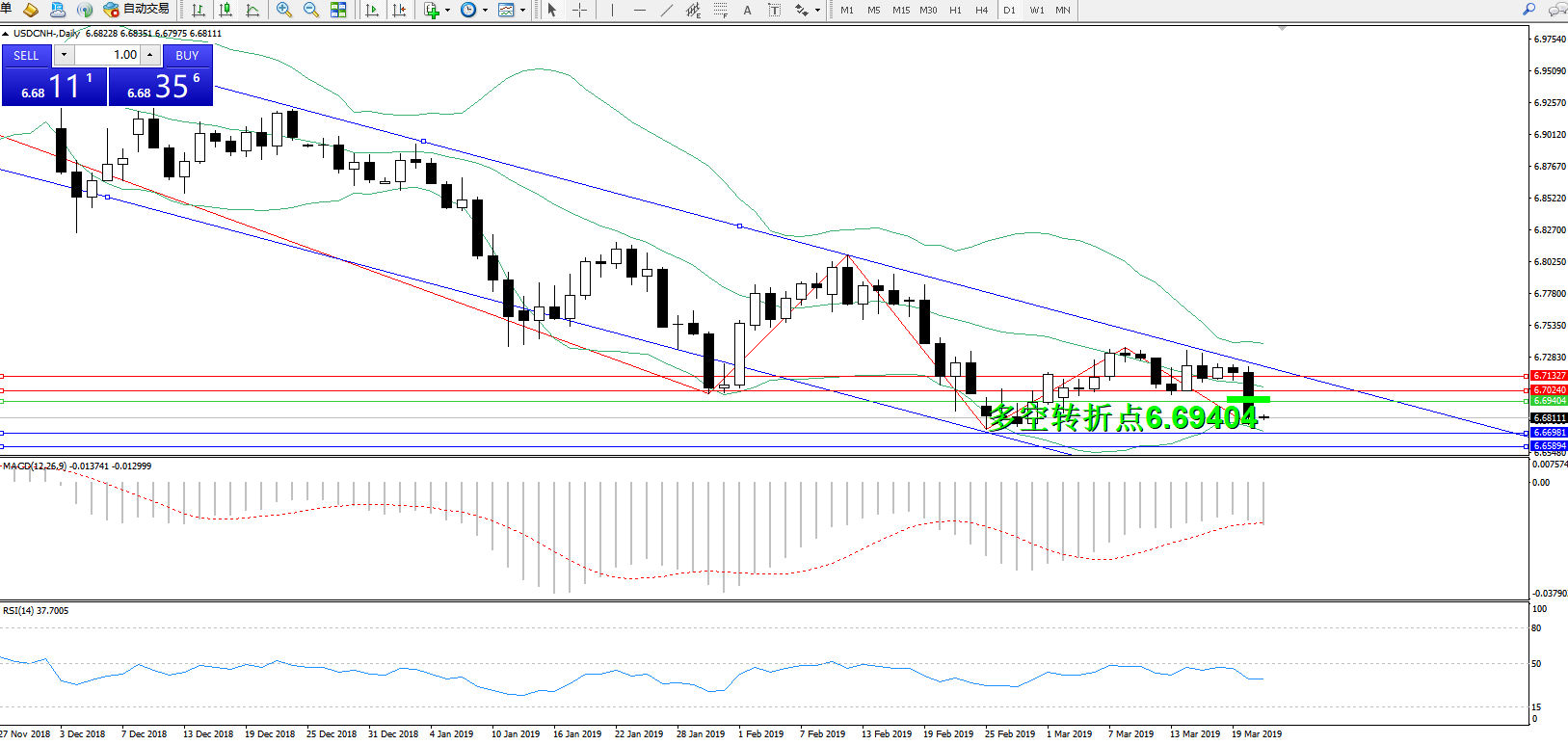 交易策略:6.69404下方看跌,目标6.66981、6.65894