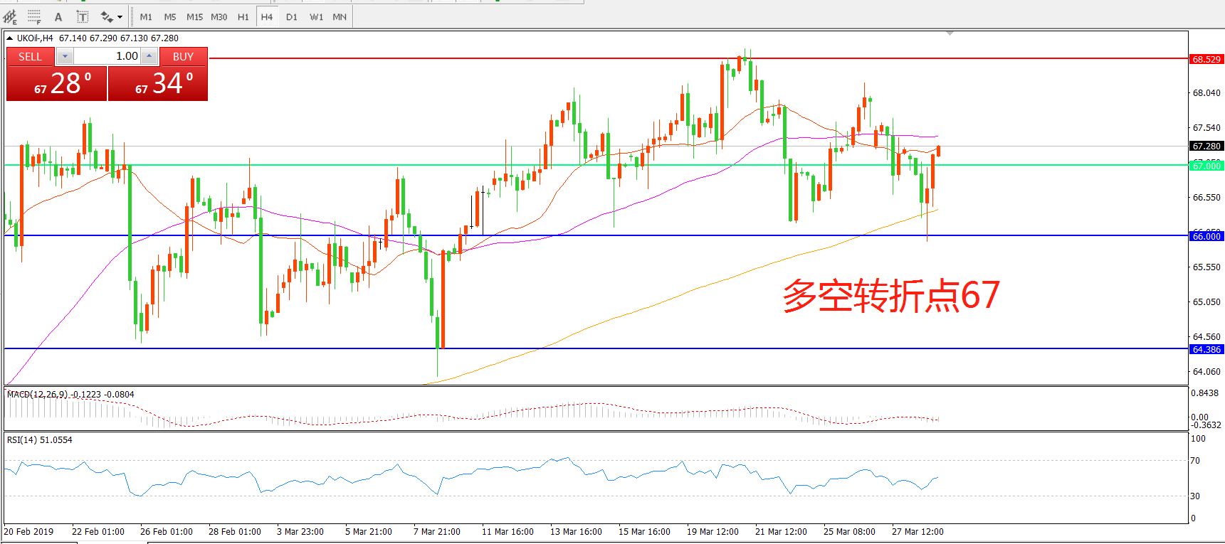 多空转折点:67.00