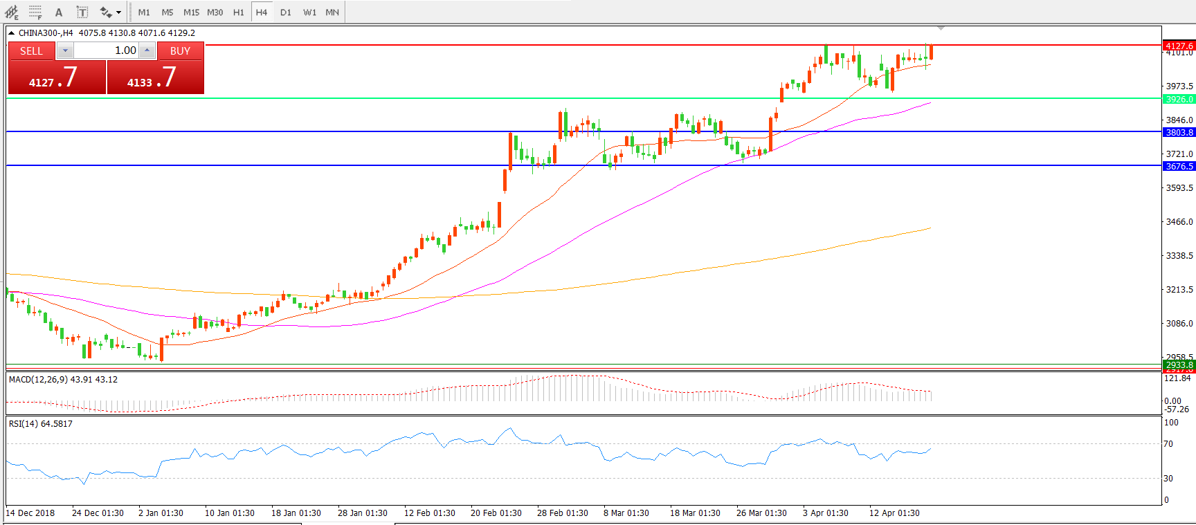 中华指数CHINA3004小时图