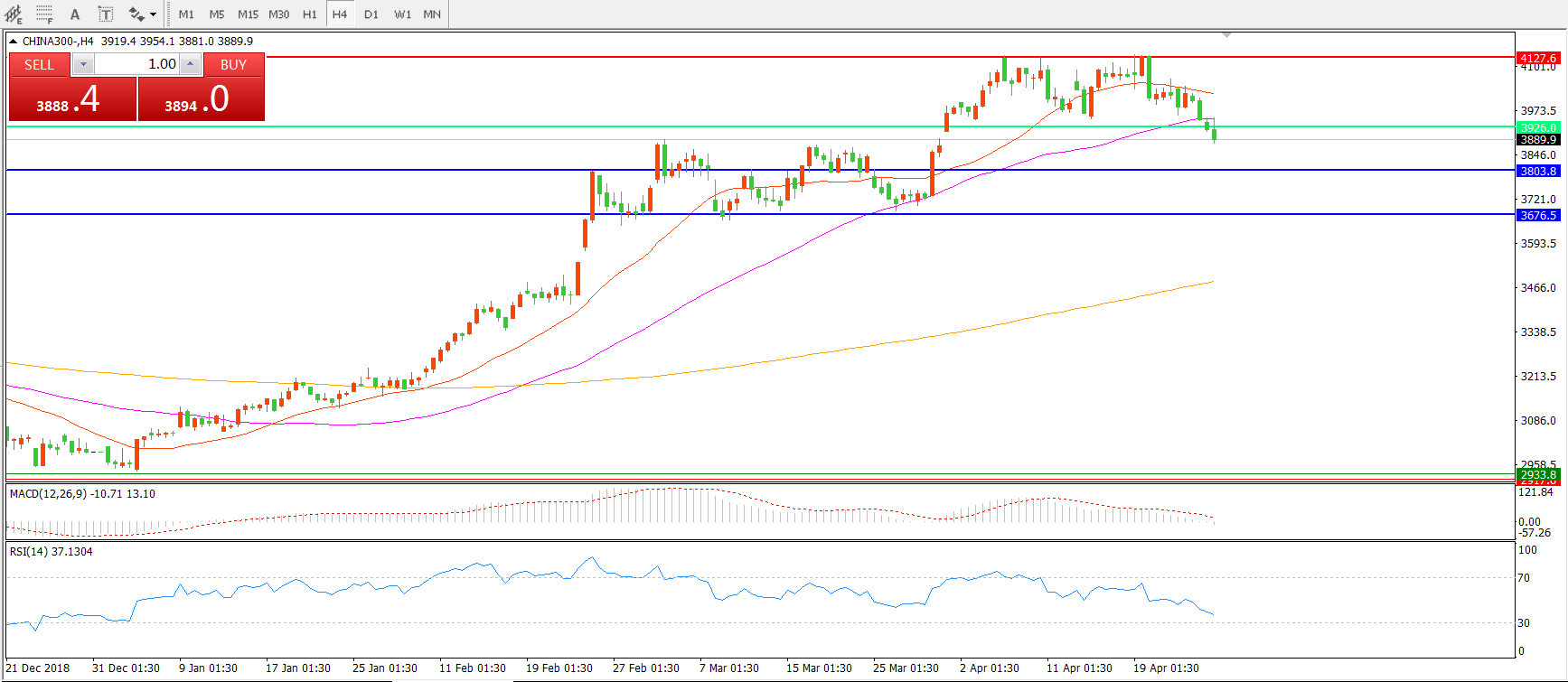 沪深300指数CHINA300         4小时图