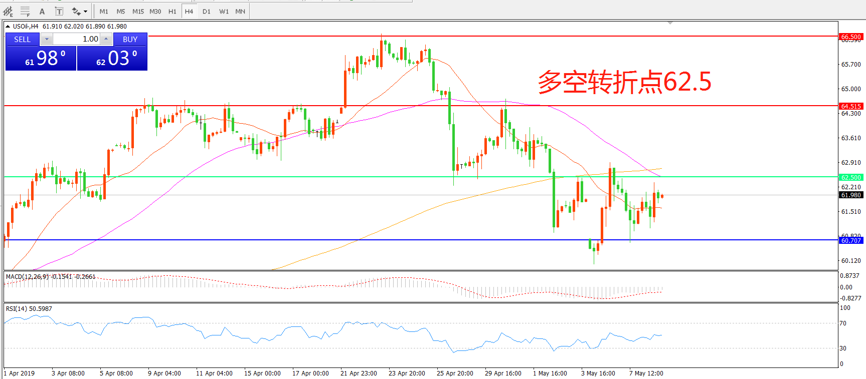 交易策略: 在62.50  之下看跌,目标60.00    58.00