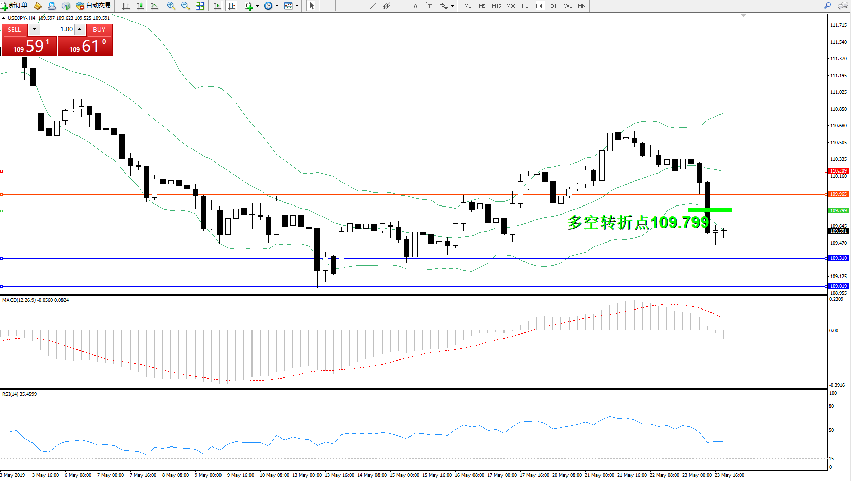 亚欧股市全线承压,美股股指期货也在盘前走低,避险情绪当道令日元受到热捧。由于全球贸易风波一波未平一波又起,市场情绪持续处于紧绷状态,同时,英国脱欧走到关键节点,加之民调显示今日开始欧洲议会改选投票中疑欧派政党团体会大幅得势,这都对全球投资者情绪造成了全面的冲击。美国国债收益率因此也进一步走低。此前美联储会议纪要继续声明年内不会降息的前景,令美元多头服下了定心丸。