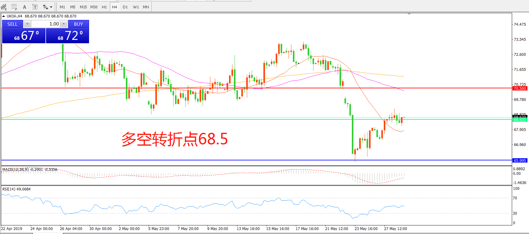 交易策略:在68.50之上看涨,目标70.50    75.50
