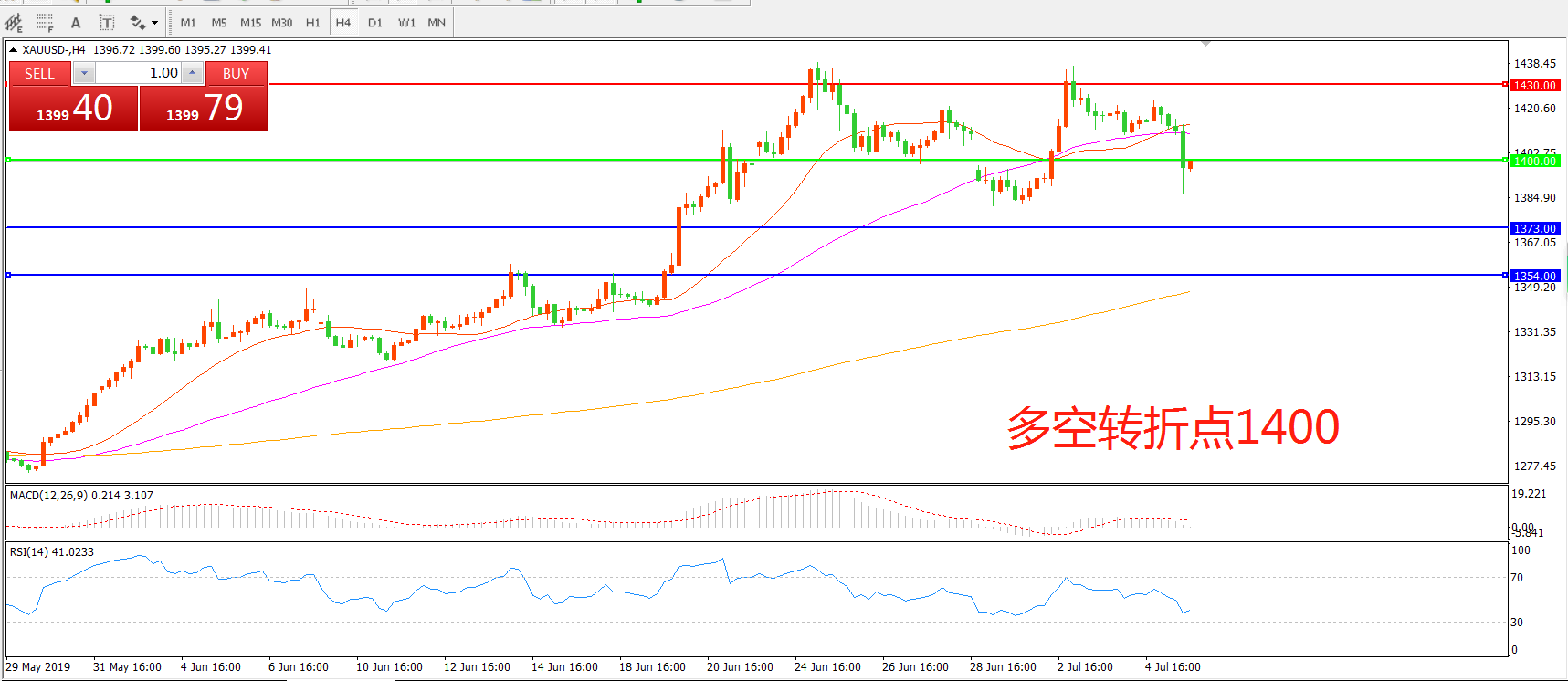 多空转折点:1400.00