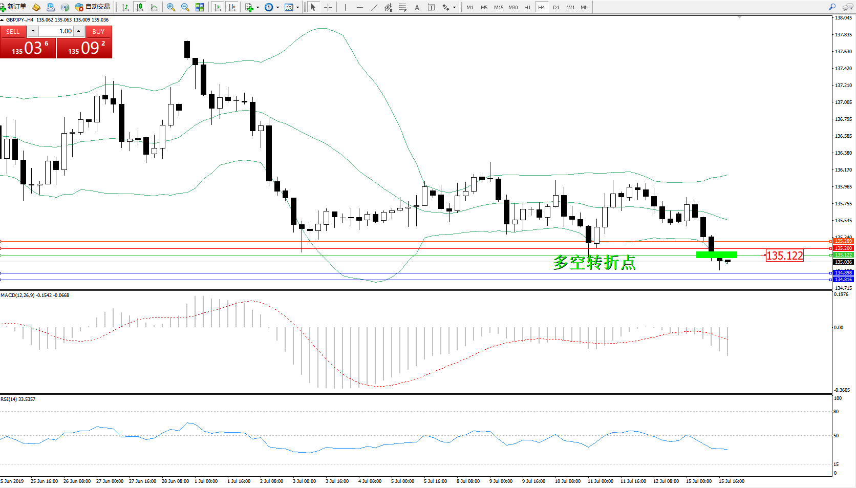 交易策略:135.122下方看跌,目标134.898134.816