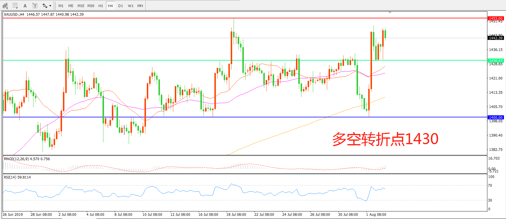 多空转折点:1430.00