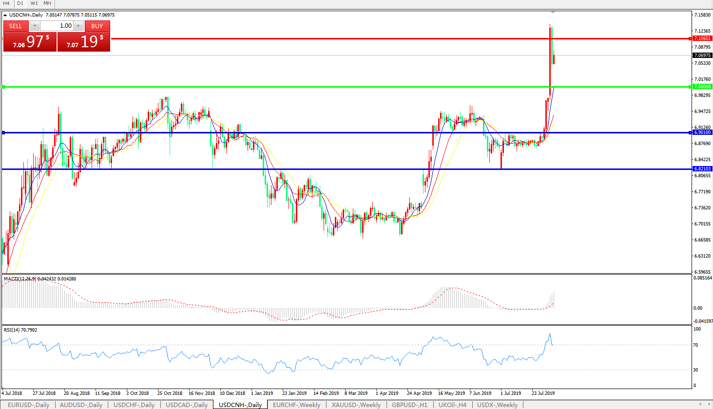 经参消息:受单边主义和贸易保护主义措施及对中国加征关税预期等影响,8月5日,人民币对美元汇率有所贬值,突破了7元。从长期看,汇率仍将由经济基本面决定,人民币没有持续贬值基础。预计接下来一段时间,人民币汇率将保持基本稳定。我国经济增速在主要经济体中位居前列,经济增长的潜力也最为突出。目前我国是世界第二大经济体,但我国人均GDP还不到1万美元,这意味着中国未来的经济增长空间仍然较大。目前我国经济虽然有下行压力,但总体表现平稳。随着国家稳增长政策的落地,下半年经济增长将保持在既定目标内。