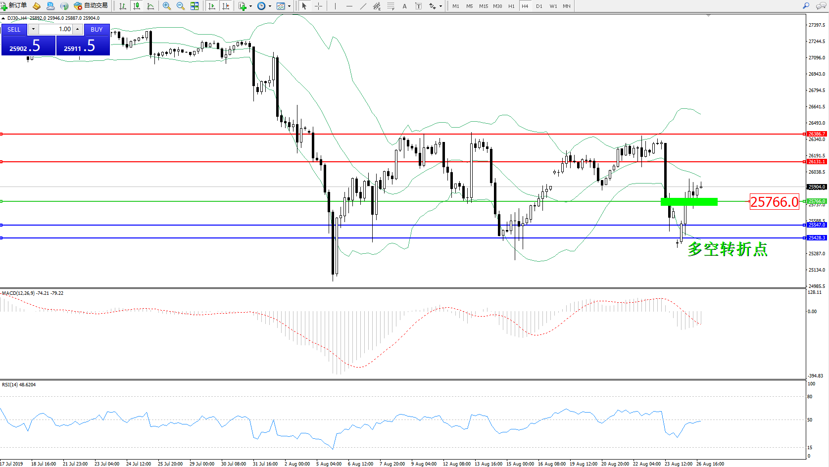 交易策略:25766上方看涨,目标26131、26386