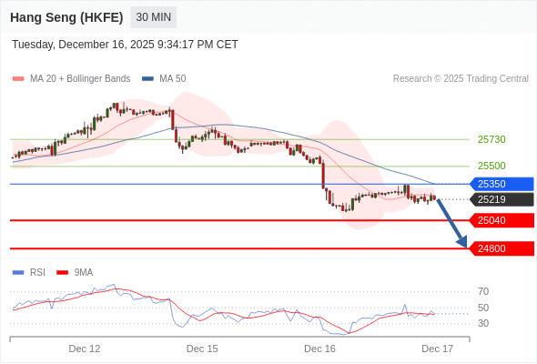 在 25350 之下,看跌,目标价位为 25040 ,然后为 24800 。