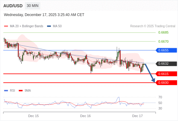 在 0.6655 之下,看跌,目标价位为 0.6615 ,然后为 0.6600 。