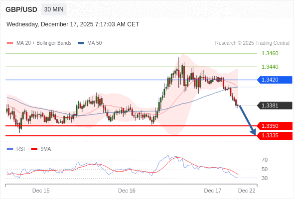 在 1.3420 之下,看跌,目标价位为 1.3350 ,然后为 1.3335 。