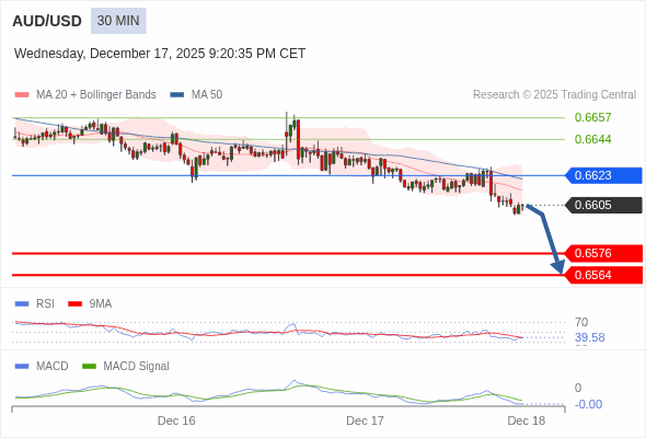 澳元/美元 当日内 : 看跌,在 0.6623 之下。