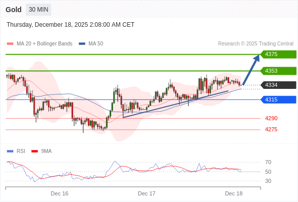 在 4315 之上,看涨,目标价位为 4353 ,然后为 4375 。