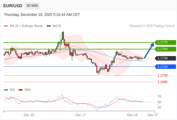在 1.1720 之上,看涨,目标价位为 1.1760 ,然后为 1.1775 。