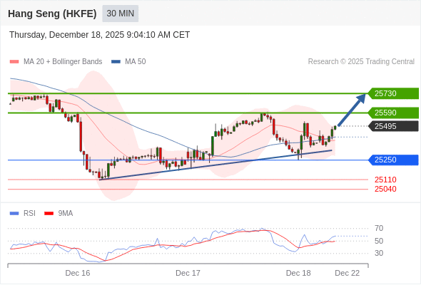 交易策略: 在 25250 之上,看涨,目标价位为 25590 ,然后为 25730 。