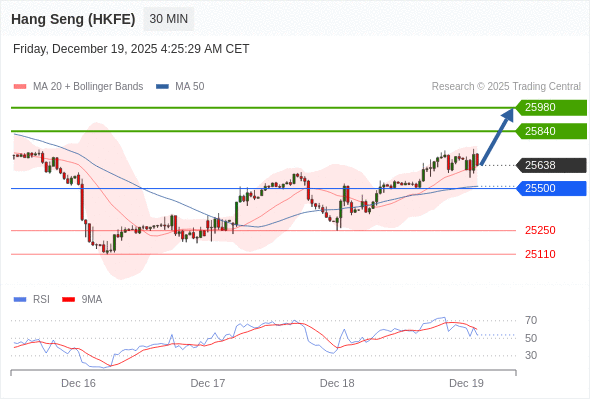在 25500 之上,看涨,目标价位为 25840 ,然后为 25980 。