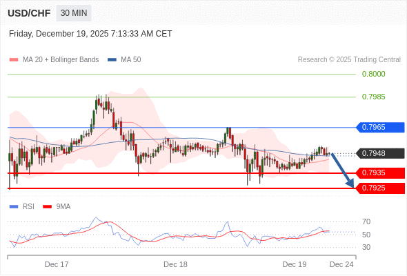 在 0.7965 之下,看跌,目标价位为 0.7935 ,然后为 0.7925 。