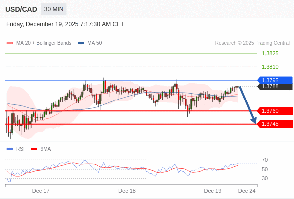 在 1.3795 之下,看跌,目标价位为 1.3760 ,然后为 1.3745 。