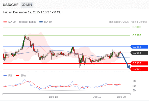 在 0.7965 之下,看跌,目标价位为 0.7935 ,然后为 0.7925 。