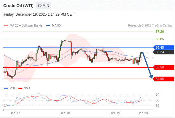 交易策略: 在 56.45 之下,看跌,目标价位为 55.50 ,然后为 54.95 。