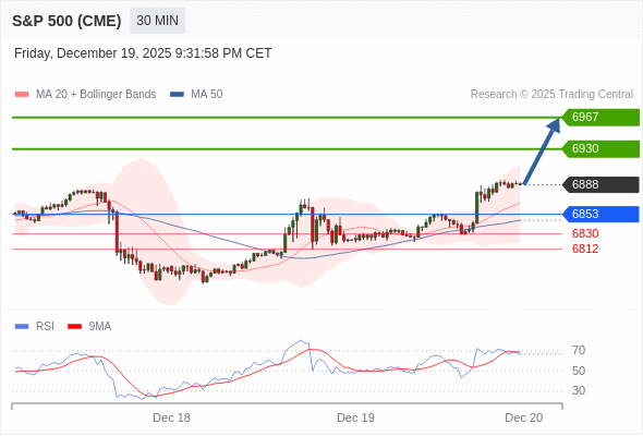 在 6853 之上,看涨,目标价位为 6930 ,然后为 6967 。