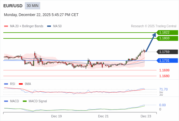 交易策略: 看涨,当 1.1731 为支撑位。