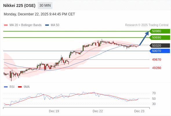 在 50070 之上,看涨,目标价位为 50690 ,然后为 50980 。