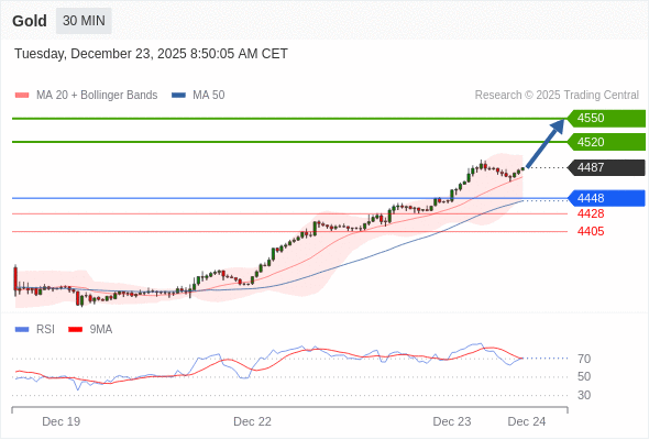 在 4448 之上,看涨,目标价位为 4520 ,然后为 4550 。