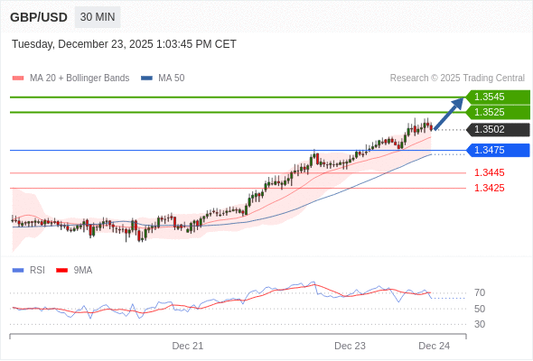 在 1.3475 之上,看涨,目标价位为 1.3525 ,然后为 1.3545 。