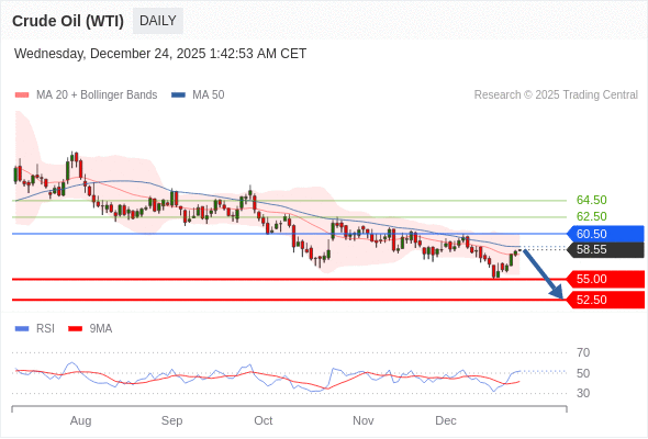 交易策略: 在 60.50 之下,看跌,目标价位为 55.00 ,然后为 52.50 。