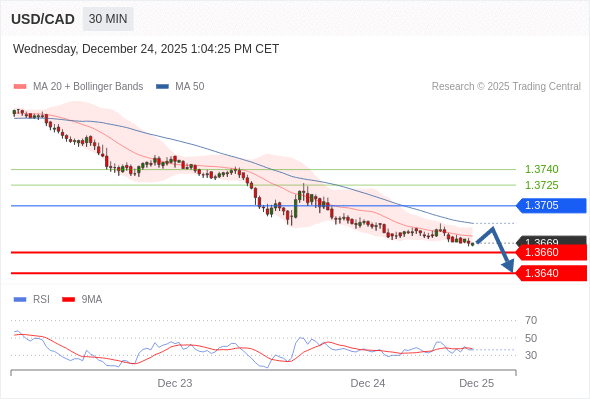 在 1.3705 之下,看跌,目标价位为 1.3660 ,然后为 1.3640 。