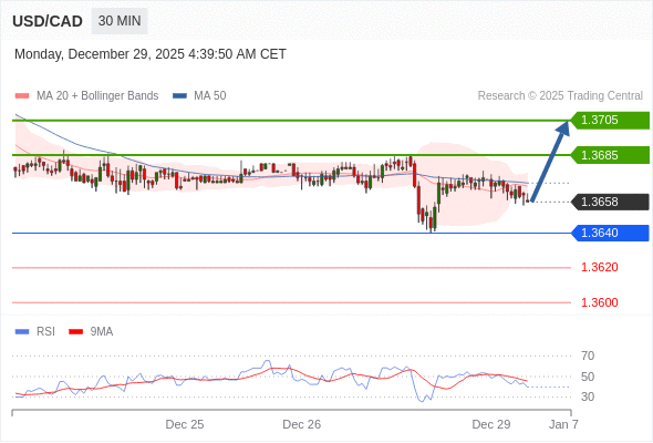 在 1.3640 之上,看涨,目标价位为 1.3685 ,然后为 1.3705 。