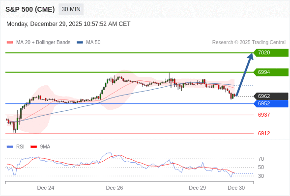 在 6952 之上,看涨,目标价位为 6994 ,然后为 7020 。