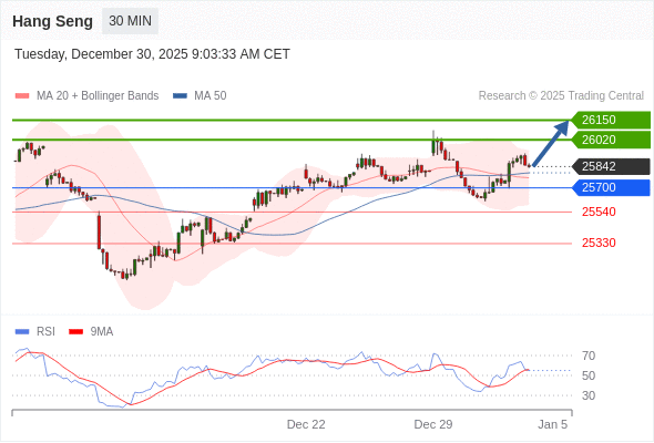 在 25700 之上,看涨,目标价位为 26020 ,然后为 26150 。
