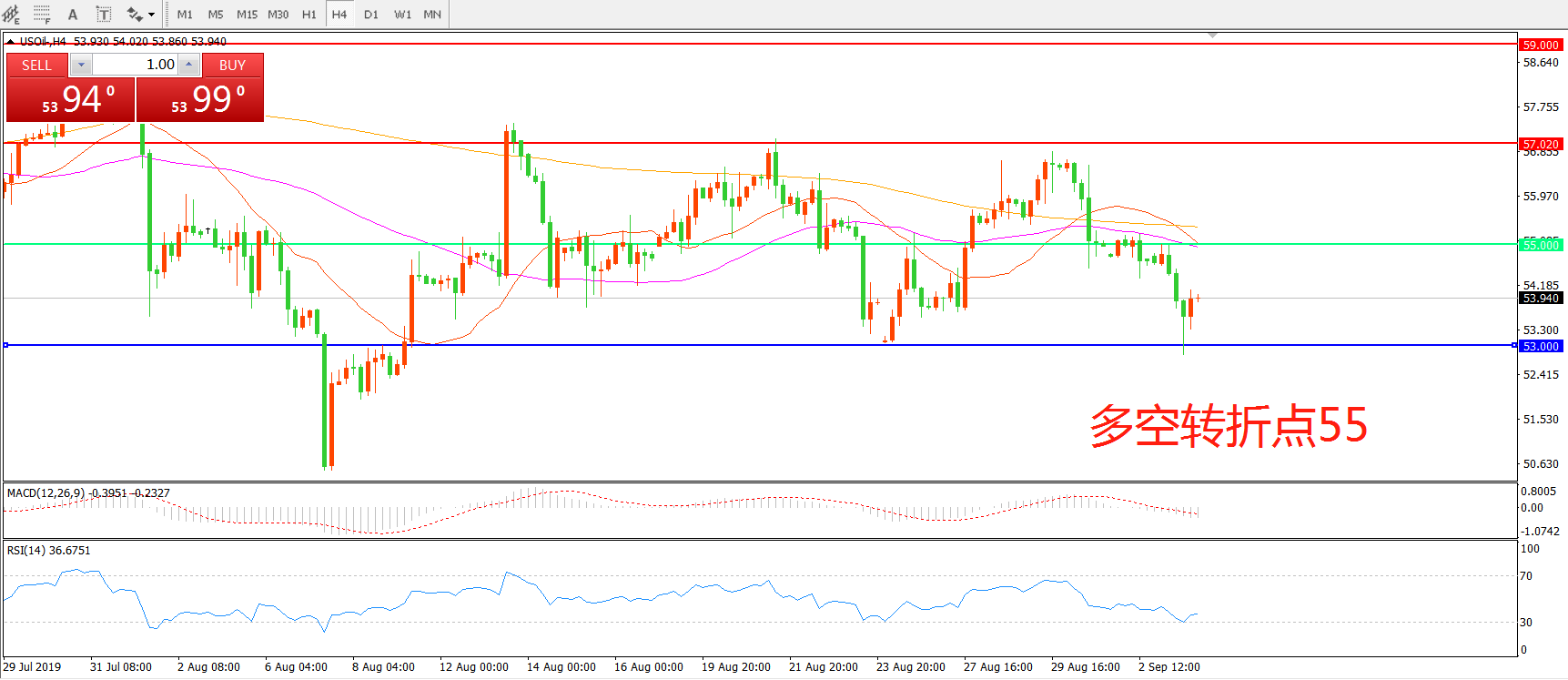 周二(9月3日),美国最新公布的经济数据表现异常疲弱,8月ISM制造业PMI跌至2016年1月以来最低水平,且为2016年8月以来首次跌破荣枯线,理论上讲任何低于50的数字都意味着经济收缩。数据公布之后,引发全球市场担忧,而中美贸易关系和英国退欧的不确定性也进一步加重了这种担忧,美油大幅跳水,跌逾2%,收报53.98美元/桶。