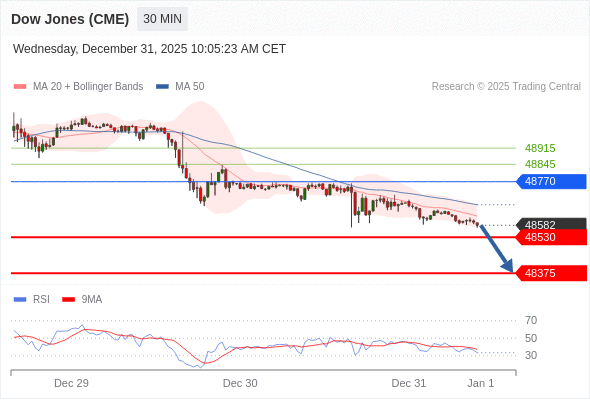 在 48770 之下,看跌,目标价位为 48530 ,然后为 48375 。