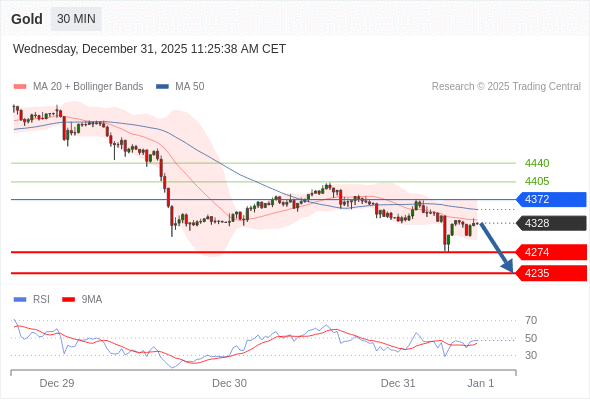 在 4372 之下,看跌,目标价位为 4274 ,然后为 4235 。