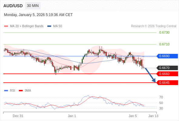 在 0.6690 之下,看跌,目标价位为 0.6660 ,然后为 0.6645 。