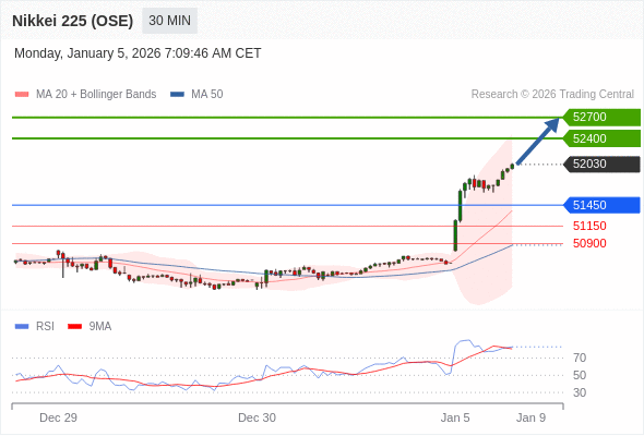 日经225股指期货 (OSE) 当日内: 目标为52700。