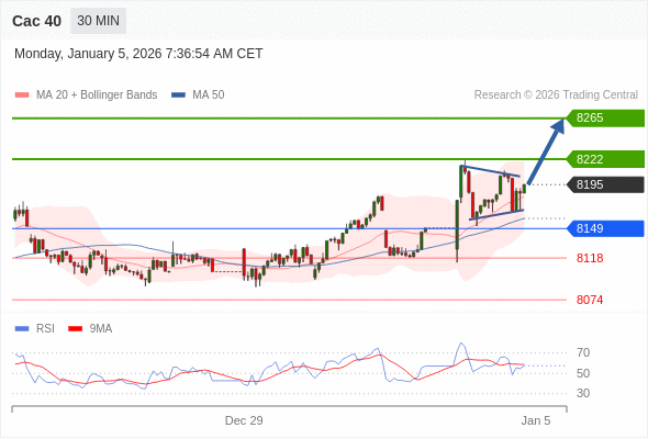 Cac 40 当日内: 在8149之上,看涨。