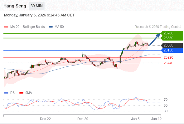 在 26150 之上,看涨,目标价位为 26550 ,然后为 26700 。