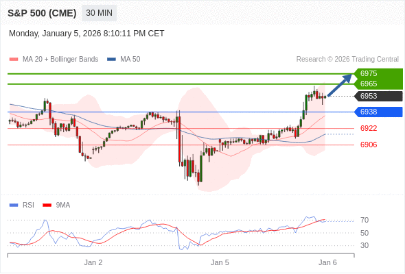 在 6938 之上,看涨,目标价位为 6965 ,然后为 6975 。