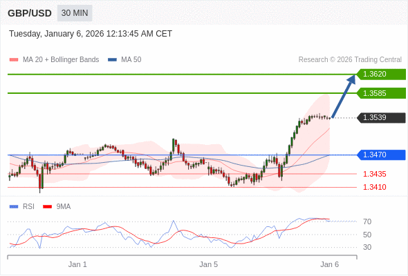 在 1.3470 之上,看涨,目标价位为 1.3585 ,然后为 1.3620 。