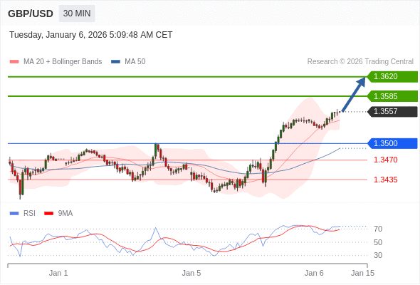 在 1.3500 之上,看涨,目标价位为 1.3585 ,然后为 1.3620 。