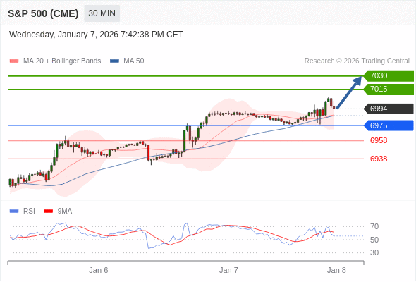 在 6975 之上,看涨,目标价位为 7015 ,然后为 7030 。