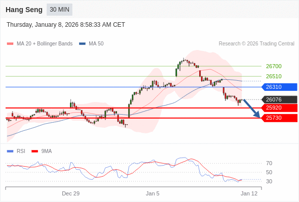 交易策略: 在 26310 之下,看跌,目标价位为 25920 ,然后为 25730 。