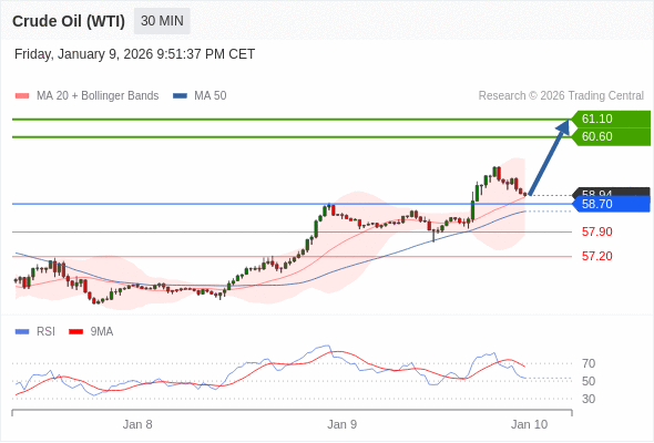 在 58.70 之上,看涨,目标价位为 60.60 ,然后为 61.10 。