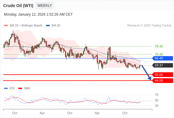 交易策略: 在 66.40 之下,看跌,目标价位为 50.00 ,然后为 44.00 。